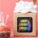 This lively and vibrant birthday-themed sticker design features the message "HAPPY BIRTHDAY, MATTHEW" having a colorful rainbow spectrum inspired gradient pattern, and an exciting bursting celebratory fireworks inspired background pattern. Vibrant stickers like this might be given as a birthday present, or used while wrapping presents/gifts, or used as a birthday party decoration when celebrating the birthday of somebody named Matthew. [~Z0000457]