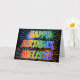This vibrant, multicolored and fun birthday greeting card design features the message "HAPPY BIRTHDAY," and the common first name "MELISSA" with the letters having a colorful rainbow spectrum like gradient coloring pattern. The background of the front also features a colorful pattern inspired by the appearance of bursting fireworks. The inside features a customizable greeting message, or could perhaps be cleared and left blank if a message is to be written by hand instead. A greeting card like this might be a fun way to send a personalized birthday message to somebody named Melissa. [~Z0000350]