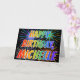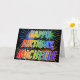 This multicolored and fun birthday greeting card design features the message "HAPPY BIRTHDAY," and the common first name "MICHELLE" with the letters having a colorful rainbow spectrum like gradient coloring pattern. The background of the front also features a colorful pattern inspired by the appearance of bursting celebratory fireworks. The inside features a customized greeting message, or could perhaps be cleared and left blank if a message is to be written by hand instead. A birthday greeting card like this could be a fun way to send a customizable birthday greeting message to somebody named Michelle. [~Z0000350]