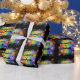 This lively and vibrant birthday-themed wrapping paper design features the message "HAPPY BIRTHDAY, MYA" having a colorful rainbow spectrum inspired gradient pattern, and an exciting bursting celebratory fireworks inspired background pattern. Exciting wrapping paper like this might be used when wrapping birthday presents or gifts that are being given to somebody named Mya. [~Z0000456]
