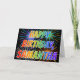 This vibrant, multicolored and fun birthday greeting card design features the message "HAPPY BIRTHDAY," and the common first name "SAMANTHA" with the letters having a colorful rainbow spectrum like gradient coloring pattern. The background of the front also features a colorful pattern inspired by the appearance of bursting celebratory fireworks. The inside features a personalized greeting message, or could perhaps be cleared and left blank if a message is to be written by hand instead. A birthday greeting card like this could be fun to give to somebody named Samantha on their birthday. [~Z0000350]