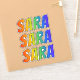 This exciting, vibrant, and fun sticker design features the common first name or given name "SARA", with the letters of the name featuring a colorful rainbow spectrum like gradient coloring pattern. It might be a fun present to give to somebody who is named Sara. [~Z0000361]