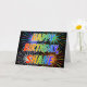 This multicolored and fun birthday greeting card design features the message "HAPPY BIRTHDAY," and the common first name "SHANE" with the letters having a colorful rainbow spectrum like gradient coloring pattern. The background of the front also features a colorful bursting fireworks inspired pattern. The inside features a customizable greeting message, or could perhaps be cleared and left blank if a message is to be written by hand instead. A birthday greeting card like this could be a fun way to send a customizable birthday greeting message to somebody named Shane. [~Z0000350]