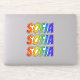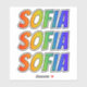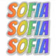 This vibrant, fun, and multicolored sticker design features the common first name or given name "SOFIA", with the letters of the name having a colorful rainbow spectrum like gradient coloring pattern. It might be a fun gift to give to somebody who is named Sofia. [~Z0000361]