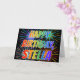 This multicolored and fun birthday greeting card design features the message "HAPPY BIRTHDAY," and the common first name "STELLA" with the letters having a colorful rainbow spectrum like gradient coloring pattern. The background of the front also features a colorful pattern inspired by the appearance of bursting fireworks. The inside features a custom greeting message, or could perhaps be cleared and left blank if a message is to be written by hand instead. A greeting card like this could be a fun way to celebrate the birthday of somebody named Stella. [~Z0000350]