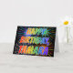 This fun, vibrant, multicolored birthday greeting card design features the message "HAPPY BIRTHDAY," and the common first name "TAMARA" with the letters having a colorful rainbow spectrum like gradient coloring pattern. The background of the front also features a colorful pattern inspired by the look of bursting celebratory fireworks. The inside features a customized greeting message, or could perhaps be cleared and left blank if a message is to be written by hand instead. A birthday greeting card like this could be a fun way to send a customizable birthday greeting message to somebody named Tamara. [~Z0000350]