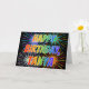 This vibrant, multicolored and fun birthday greeting card design features the message "HAPPY BIRTHDAY," and the common first name "TANYA" with the letters having a colorful rainbow spectrum like gradient coloring pattern. The background of the front also features a colorful bursting fireworks inspired pattern. The inside features a customized greeting message, or could perhaps be cleared and left blank if a message is to be written by hand instead. A birthday greeting card like this could be fun to give to somebody named Tanya on their birthday. [~Z0000350]