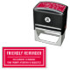 First notice self-inking stamp with red ink for any business, company, corporation, or home office. Bold design reading "friendly reminder, this account is overdue, your prompt attention is requested", ideal for stamping documents with your own color choice.