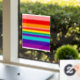 Original eight-stripe version of the gay pride flag designed by Gilbert Baker in 1978. Baker assigned specific meaning to each of the colours: