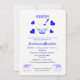 Cute invitation card for a first rice weaning celebrations; in blue and white with elephants, funny rice bowl and a gingham pattern it's ideal for a baby boy