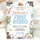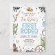 Saddle up for the big one! This 'My First Rodeo' birthday invitation features a charming vintage western aesthetic, perfect for your little one's milestone celebration. With classic cowboy elements and rustic typography, it captures the spirit of the Wild West. High-quality and fully customizable, this invite makes it easy to share all your party details with friends and family.