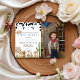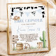 Adorable First Rodeo birthday invitation with a photo spot, featuring cow print bunting, cowboy hat, boots, cactus, wagon wheel, wooden signs, and rustic western elements. Perfect for a cowboy-themed 1st birthday celebration. Personalize with party details and your child’s photo for a unique touch. Ideal for country, farm, and rodeo-style parties. Printable or digital invitation for easy sharing.