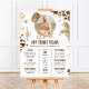 WILD WEST RODEO (TAN) - This fun South Western, Rodeo Cowprint, Boy First Birthday Milestone Board is fully editable! This Cowboy Birthday Milestone Board showcases a bandana, Cowboy Hat, Lasso, Cactus, and other western artwork surrounded by brown cowprint. With the ability to add your little cowboy's photo and all the adorable details of your little man's first year, this Milestone Board / Yard Sign is sure to be a huge hit! Sure to complete any Western Themed birthday party, and is easily editable for other birthday years! By using the easy to use Zazzle software (no download necessary) right in your browser, you simply purchase and personalize all in the same place. It's as easy as that!
