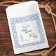 First rodeo, cowboy, blue plaid, 1st birthday party favor bags. Cute dusty blue plaid, desert cactus design complete with horse riding cowboy. Western party favor bags with thank you message. Vintage browns and blue colors helps create the perfect wild west birthday party aesthetic. Customize with your information. Matching party supplies, invitations and signs are available in the First Rodeo Blue Buffalo Plaid 1st Birthday Collection in The Gathering Designs store.
