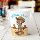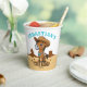 First Rodeo cute cowboy baby horse birthday party tableware personalized paper cups, adorable brown baby horse in a cowboys hat and decorated saddle on Arizona landscape for cowboys western themed birthday party, turquoise and brown colors.