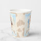 First Rodeo themed 1st Birthday paper cups featuring a cute happy cowboy horse in pastel blue and beige and beige cow skin pattern. Cute design for first or any Birthday of a little boy. Easily personalize all the text including the number of the Birthday. - Kate Eden Art
