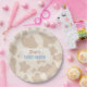 First Rodeo themed 1st Birthday paper plates with beige cow skin pattern with a texture. Easily personalize the text and you can use it for any other celebrations - Kate Eden Art