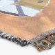 A quality printed throw has its advantages. This is a much finer weave throw than its loopier cousins, and though lighter, it is worth the investment for custom room accessorizing. The back is much prettier than the typical brown, and the fringe on the long sides very vivid, the selvage nicely done. Before photographing, I washed the throw in cold water, delicate, with a thicker woven throw the same size. On tumble dry low, this throw was dry in half the time as the other. This is a very practical quality if you use throws for furniture covers or to wrap up in frequently. The sleekness of the fabric makes it a great layer for accenting or protecting without the feeling of sitting on too much stuff. Perfect for napping or when you feel a light chill coming on. The color printing is beautiful and on this fabric, matched the design and color of my Photoshop image. This is an advantage for blending room fabrics and colors. The fringe on the short sides prints the colors from the design image and therefore varies from the side fringe. I streaked a white fractal line through the plaid pattern to give the illusion of weaving. This printed as crisp as an illusory thread, and put some white in the short side fringe, showing another advantage of print vs loomed- for artistic purposes, line lines, detail, and color integrity can be planned and preserved. My loomed throws have color limitations and more of a needlepoint texture. Print throws reproduce an exact image. The throw felt a little stiff straight out of the package, but this went away in the first delicate wash. Of course I searched the wash water for ink or bleeding and there was none.