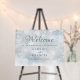 A chic winter wedding welcome sign featuring delicate snowflakes falling across your personalized welcome message, names and special date on a winter frost background. Designed by Thisisnotme©