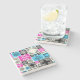 A bold, patterned stone coaster with a funny caption for a tea or coffee lover. Use "Personalize this template" to change the "First Things First Tea Break!" text, if desired. Busy with decorative tiles of various sizes and varied patterns. Black and white designs on magenta, blue, black and cream backgrounds. All patterns were designed and drawn by me and are inspired by Celtic and Islamic design.