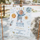 Sweet outer space or first trip around the sun first birthday welcome sign for a baby boy that features your little boy's photo in the space helmet. This first trip around the sun 1st birthday welcome sign also features, a small sun, planets, stars, spaceship and spaceman.
