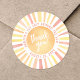 This round sticker design features a vibrant sun at the center, with the cheerful phrase "Thank You!" placed right on top. The sun's rays shine in classic sun colors—yellow, orange, and a hint of red—adding a bright and joyful touch to your First Trip Around The Sun 1st birthday celebration.