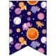a space-themed pattern. This pattern features a variety of celestial objects and animals. There are planets of different sizes and colors, such as purple, orange, and yellow, along with a bright sun. Additionally, there are animated animals, including a pink elephant, a yellow lion, and a purple hippopotamus, floating amidst the celestial bodies. The background is a deep black, accentuating the bright colors of the planets and animals.