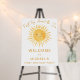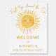 This cute welcome poster is decorated with a yellow watercolor smiling sun and features the phrase "First Trip Around the Sun" in stylish script typography.