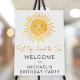 This cute welcome sign features a yellow watercolor smiling sun and the phrase "First Trip Around the Sun" in stylish script typography.
