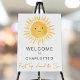 This cute welcome sign is decorated with a yellow watercolor smiling sun and features the phrase "First Trip Around the Sun" in stylish script typography.