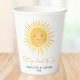 These cute paper cups are decorated with a yellow watercolor smiling sun and feature the phrase "First Trip Around the Sun" in stylish script typography.