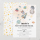 Celebrate your little one’s first birthday with this adorable “First Trip Around the Sun” outer space themed design This charming design features cute woodland animals a raccoon and a bear dressed as astronauts, surrounded by watercolor rockets, planets, stars, and a dreamy galaxy background. Perfect for a boy’s 1st birthday, this playful space theme adds a fun and imaginative touch to your celebration and is sure to impress your guests.