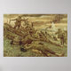 First Wave at Omaha by Ken Riley Print. Omaha Beach, D-Day -- June 6, 1944. Behind them was a great invasion armada and the powerful sinews of war. But in the first wave of assault troops of the 29th (Blue and Gray) Infantry Division, it was four rifle companies landing on a hostile shore at H-hour, D-Day -- 6:30 a.m., on June 6, 1944. The long-awaited liberation of France was underway. After long months in England, National Guardsmen from Virginia, Maryland and the District of Columbia found themselves in the vanguard of the Allied attack. In those early hours on the fire-swept beach the 116th Infantry Combat Team, the old Stonewall Brigade of Virginia, clawed its way through Les Moulins draw toward its objective, Vierville-sur-Mer. It was during the movement from Les Moulins that the battered but gallant 2d Battalion broke loose from the beach, clambered over the embankment, and a small party, led by the battalion commander, fought its way to a farmhouse which became its first Command post in France. The 116th suffered more than 800 casualties this day -- a day which will long be remembered as the beginning of the Allies' "Great Crusade" to rekindle the lamp of liberty and freedom on the continent of Europe. All Prints are presented & displayed at the largest size/resolution available. The system will prevent you from choosing a size larger than the image is capable. Range through the sizes available from smallest to largest and choose your size of choice.