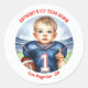 Celebrate your little MVP with this classic round sticker featuring a football-loving toddler in a bold jersey and helmet, ready for the end zone! Personalize with your child’s name, location, or birthday message. Perfect for party favors, envelope seals, gift bags, or custom labels that tie your football-themed birthday party together.