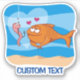 Cartoon illustration of fish in love with the worm bait in hook. Custom Text.