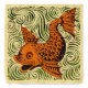 Fish Tile Graphic - This antique orange fish is a graphic art design, based on an 1800s Victorian tile by famous arts & crafts designer William De Morgan. The artwork painting is based on the arts & crafts movement, and harkens back to ancient fish tiles from Greece and Rome.