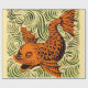 Fish Tile Graphic - This antique orange fish is a graphic art design, based on an 1800s Victorian tile by famous arts & crafts designer William De Morgan. The artwork painting is based on the arts & crafts movement, and harkens back to ancient fish tiles from Greece and Rome.