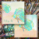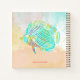 Personalized artist's notebook with hand-illustrated funky fish coastal aesthetic design. Tropical turquoise fish swim across the front of this 8.5 inch square notebook. Customize with a name at the bottom over a watercolor background in pastel colors with another fish on the back cover. Inside, choose your page style - this example is blank pages for drawing.