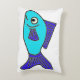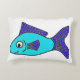 The blue fish on the white pillow would have a soft, light blue body that contrasts beautifully against the crisp white background. Its body would be gently rounded, with a sleek, streamlined shape that gives the impression of movement, as if the fish is gracefully swimming through water.