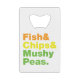 Fish & Chips & Mushy Peas. Credit Card Bottle Opener