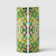 Kaleidoscope in sandy texture barely perceptible with predominant yellowish green color as if aged, however, interesting details are colored pigments and a strong, slightly 'aqua cyan' that resemble the shine of fish scales or compact discs(DVD).