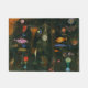In Fish Magic, Paul Klee creates a magical realm where the aquatic, the celestial, and the earthly intermingle. A delicate black surface covers an under layer of colors, which the artist revealed by scratching and scrawling designs in the black paint. At the center of the painting, a square of muslin is glued onto the canvas. A long diagonal line reaching to the top of the clock tower is poised as if to whisk off this subtle curtain.