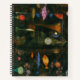 In Fish Magic, Paul Klee creates a magical realm where the aquatic, the celestial, and the earthly intermingle. A delicate black surface covers an under layer of colors, which the artist revealed by scratching and scrawling designs in the black paint. At the center of the painting, a square of muslin is glued onto the canvas. A long diagonal line reaching to the top of the clock tower is poised as if to whisk off this subtle curtain.