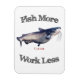 A fun fishing design especially for catfish anglers. A monster cat surrounded by the text "Fish More Work Less".