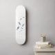 Fish shaped paint splurge surf logo modern art skateboard, blues, purples and whites