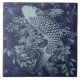Lovely blue (hand drawn) light teal blue carp against a deep, rich blue background on a 6x6 ceramic tile.