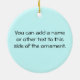 Lightweight, smooth, pure white ornament with nice sheen. Perfect size to be seen from across the room ... and to attract closer inspection! Price was great for ordering enough for the whole family! Clear, bold black design just as requested. Matches the order exactly. Just so nice!