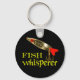 Funny fishing keychain for all fishermen and fisherwomen. Fish Whisperer in text with a full color fishing lure near the top.