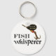 Funny fishing keychain for all fishermen and fisherwomen. Fish Whisperer in text with a full color fishing lure near the top.