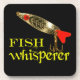 Funny fishing coaster for all fishermen and fisherwomen. Fish Whisperer in text with a full color fishing lure near the top.